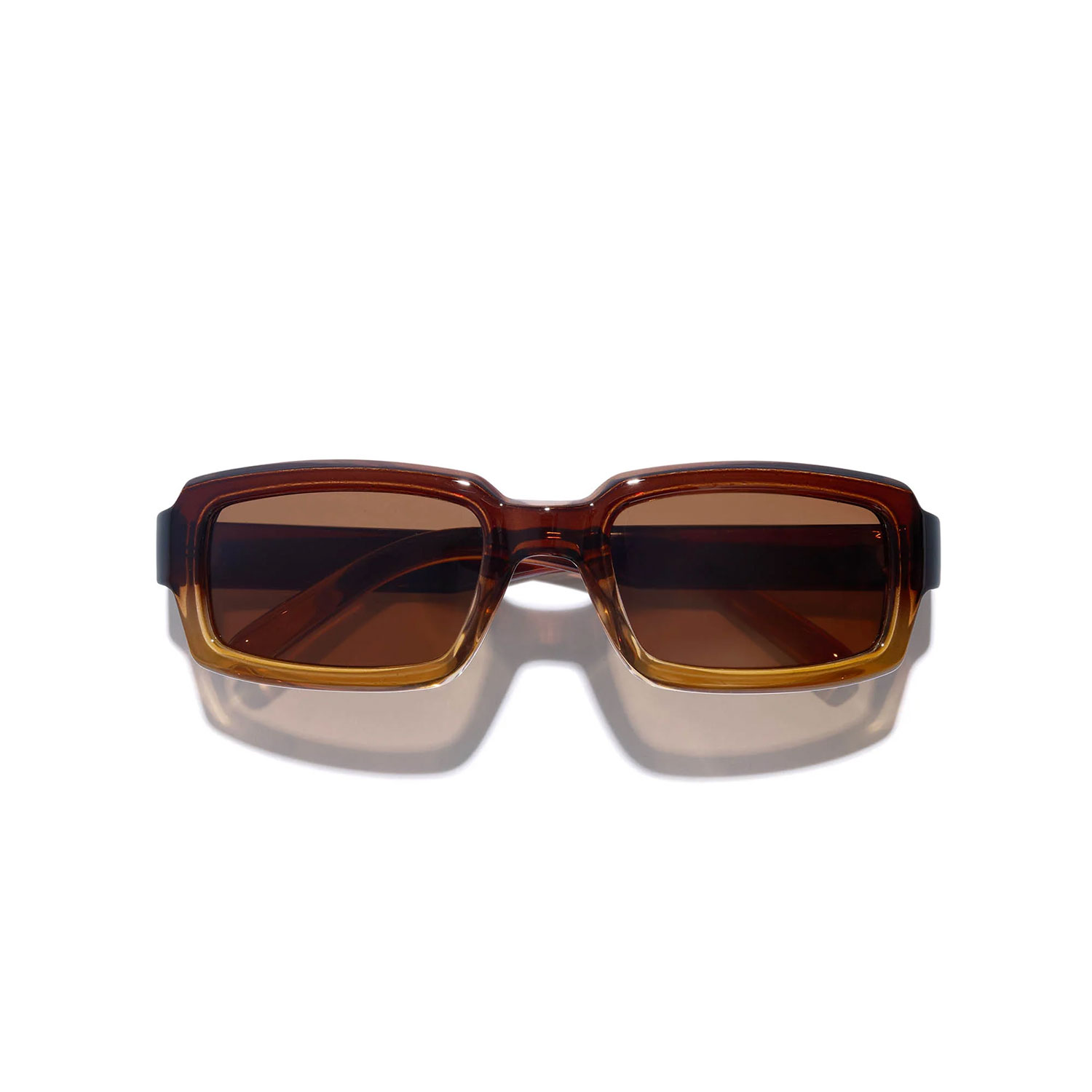 With wide lenses for maximum shade and temple tips that flow smoother than your layback, the Interceptor has a strong brow-line that’s chiselled for a sculptural highlight. Ready to ride into the next dimension? Buckle up with this custom fade crystal sunglass that melts into the face when worn. Featuring brown polarised lenses for ultimate glare reduction.